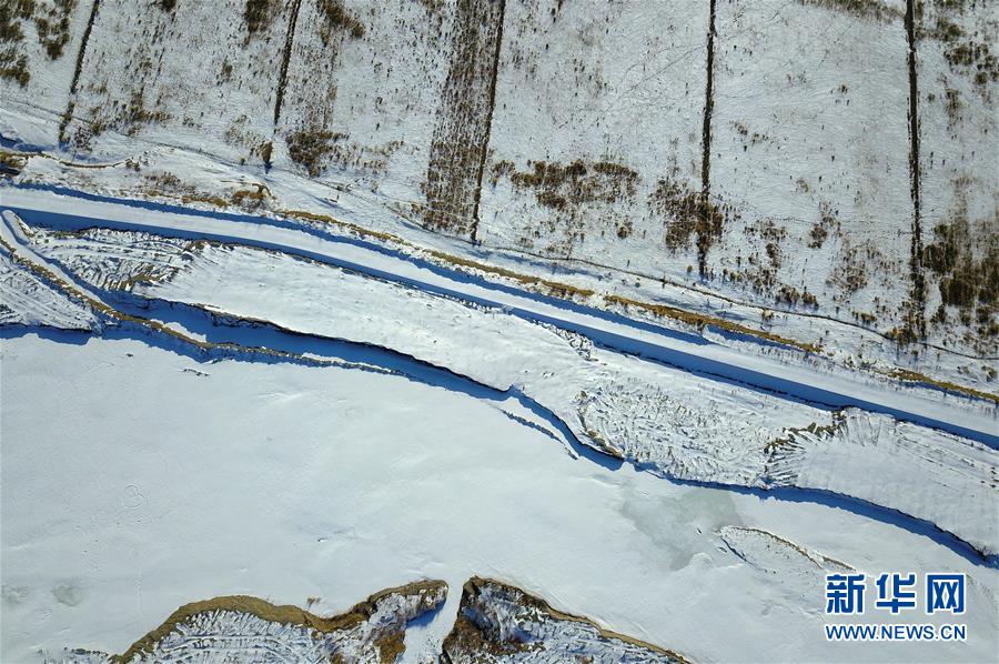 这是1月13日在甘肃省武威市天祝藏族自治县境内拍摄的祁连山下冬日景色(无人机照片)。新华社记者 范培珅 摄
