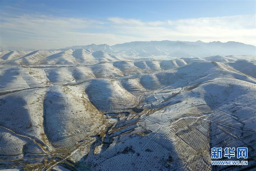 这是1月13日在甘肃省武威市天祝藏族自治县境内拍摄的祁连山下冬日景色(无人机照片)。新华社记者 范培珅 摄