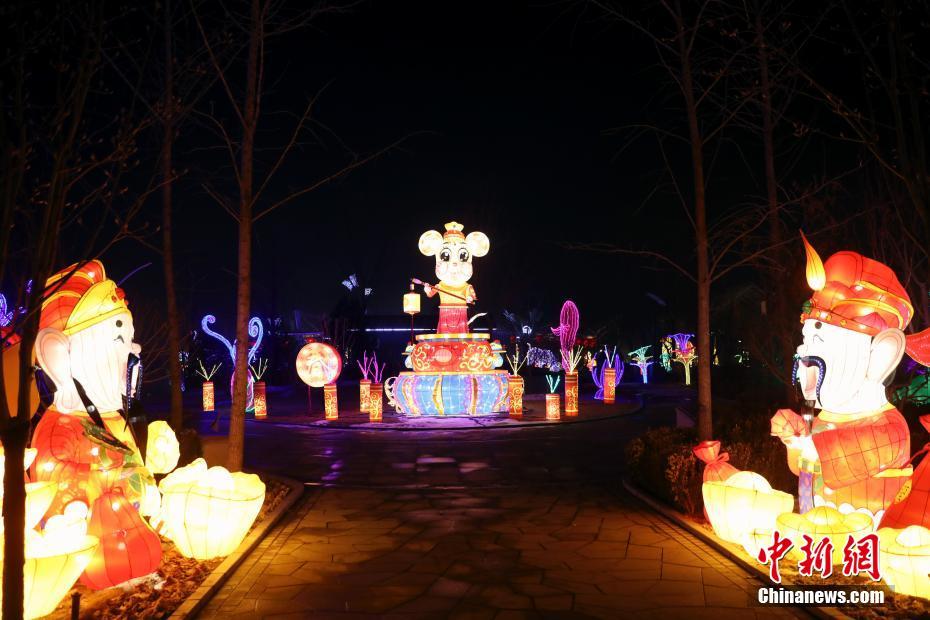 2月8日元宵节,北京市丰台区南宫旅游景区点亮5000余盏彩灯并通过全媒体进行直播,让市民们在家就能赏灯,并为抗击疫情祈福加油。中新社记者 盛佳鹏 摄