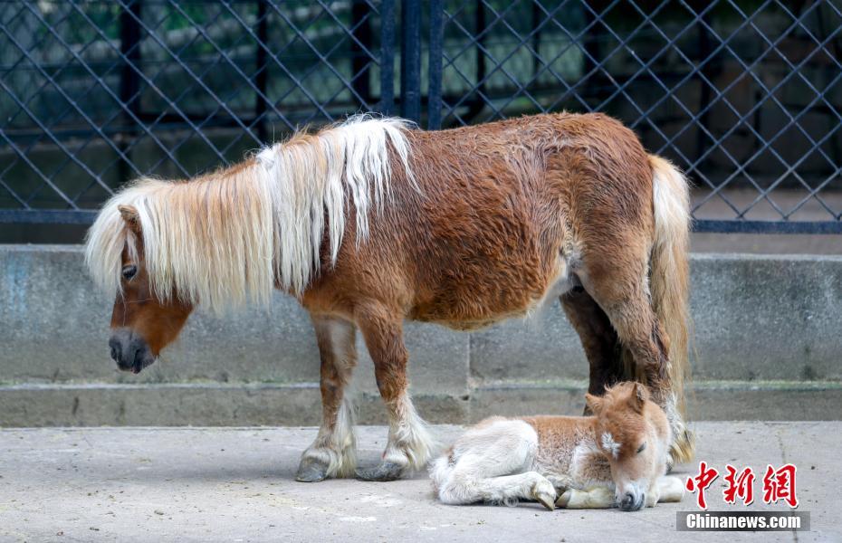 4月22日,新出生的小矮马依偎在“妈妈”脚边打盹。当日,武汉动物园恢复开放。疫情防控阶段每日限流1.5万人次,采取无接触的售票方式。园内露天动物场馆正常开放,大熊猫馆、河马馆、犀牛馆、狒狒馆等四个场馆仅开放室外区域。中新社记者 张畅 摄