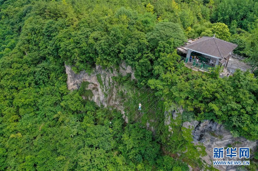 6月9日拍摄的贵阳市天河潭旅游度假区(无人机照片)。 夏日的贵阳市天河潭旅游度假区草木苍翠,风景如画,吸引游客来此休闲游玩。 新华社记者 欧东衢 摄