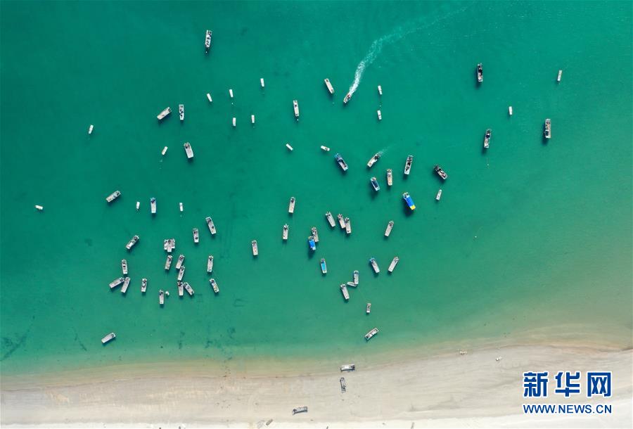 这是6月19日拍摄的福建省东山县马銮湾内停泊的小船(无人机照片)。 福建省漳州市东山县是福建省第二大海岛县,总面积248.9平方公里,拥有76个离岛和10多个月牙形海湾,旅游资源丰富。 近年来,东山县按照“一岛一景区”规划发展,建设“全域生态旅游海岛”,2019年全县接待游客721万人次,实现旅游收入74.92亿元。 新华社记者 姜克红 摄