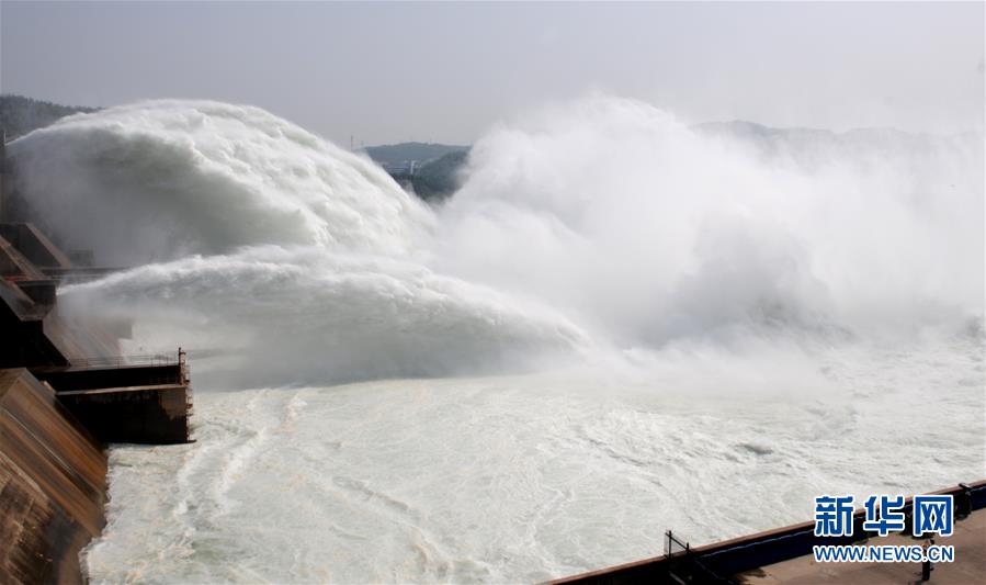 这是6月25日拍摄的黄河小浪底水库泄洪。 当日,位于河南济源的黄河小浪底水库按4200立方米每秒流量泄洪,巨大的水流喷涌而出,再现“黄河之水天上来”的壮观景象。 新华社发(苗秋闹 摄)