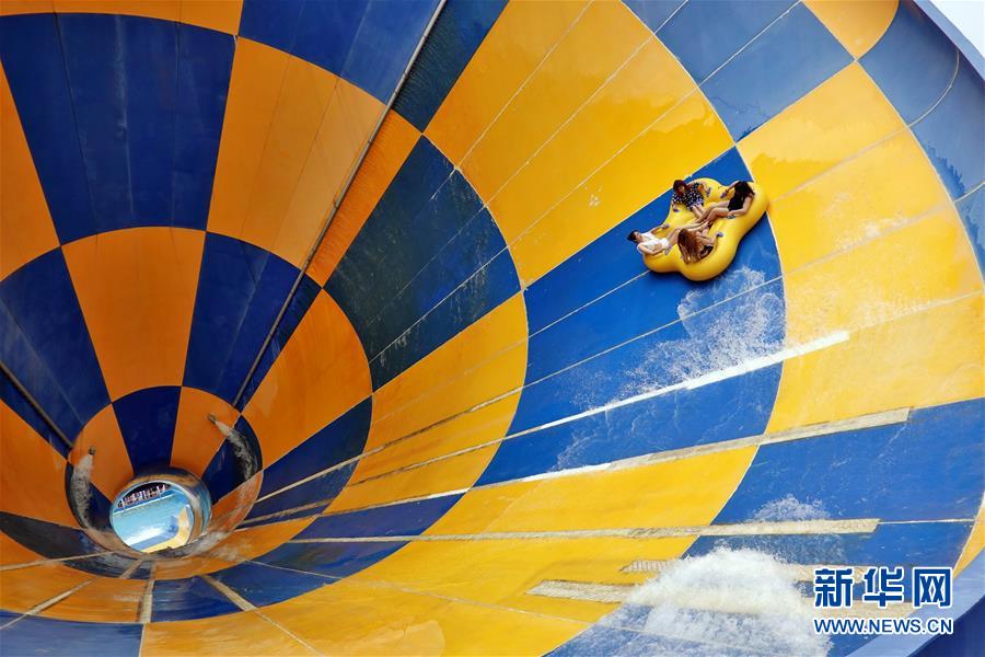6月25日,游客在山东烟台37度梦幻海水乐园体验“深海龙卷风”游乐项目。 当日是端午节,人们用各种方式庆祝佳节,尽享假日时光。 新华社发(唐克 摄)