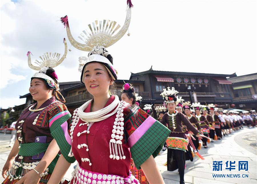 6月25日,身着盛装的苗族群众在贵州省黔东南苗族侗族自治州丹寨县万达小镇景区表演芦笙舞。 当日是端午节,人们用各种方式庆祝佳节,尽享假日时光。 新华社发(杨武魁 摄)