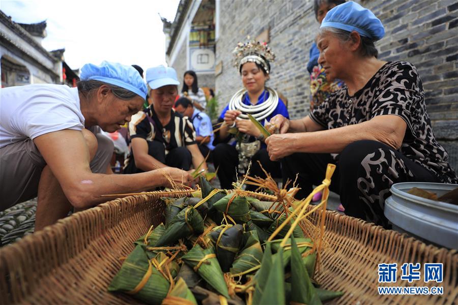 6月25日,人们在贵州省黔东南苗族侗族自治州锦屏县隆里古城包粽子。 当日是端午节,人们用各种方式庆祝佳节,尽享假日时光。 新华社发(刘光英 摄)