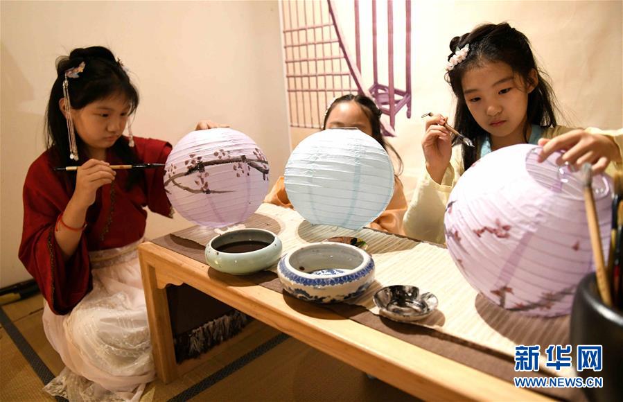 6月25日,在河北省石家庄桥西区东园传统文化体验基地,学生们绘制灯笼。 当日是端午节,人们用各种方式庆祝佳节,尽享假日时光。 新华社发(陈其保 摄)
