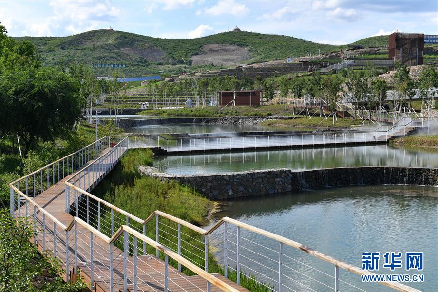 这是乌兰浩特市天骏山的人工湖(6月30日摄)。 天骏山位于内蒙古自治区兴安盟乌兰浩特市郊区,曾因采挖石料而造成山体裸露,植被匮乏,山体上留下了多处深坑。近年来,当地政府加大生态修复力度,为天骏山增添绿色,将荒山改造成旅游景区,吸引游客前往游玩。 新华社发(贝赫 摄)