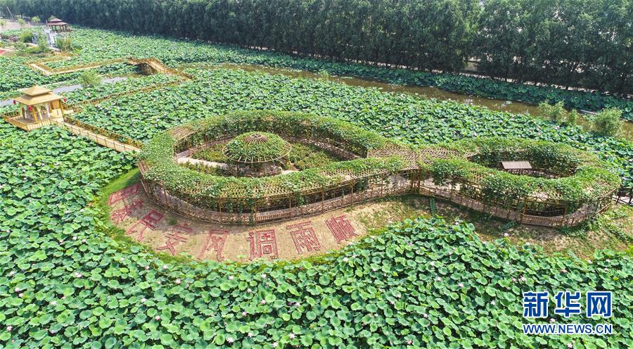 7月1日拍摄的河北省香河县刘宋镇万亩荷塘(无人机照片)。 新华社记者 李晓果 摄