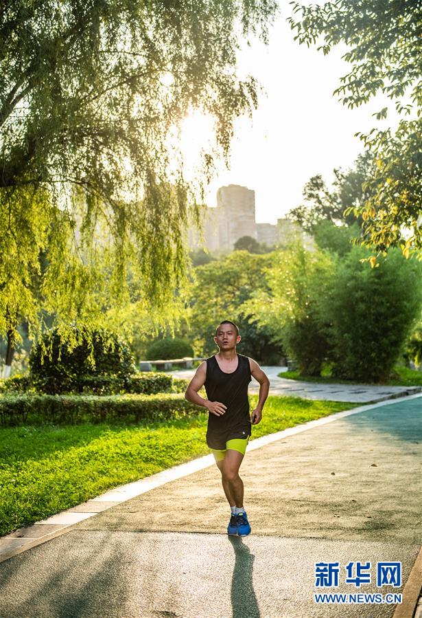 市民在观山湖公园内跑步(7月29日摄)。 观山湖公园位于贵阳市观山湖区中心区域,公园占地5500余亩,林木茂盛,鲜花繁多。园内由观山湖和金华湖组成的生态湿地水体,常年保持均衡水位,一年四季碧水涟漪,是贵阳市的城市“绿肺”。 新华社记者 陶亮 摄