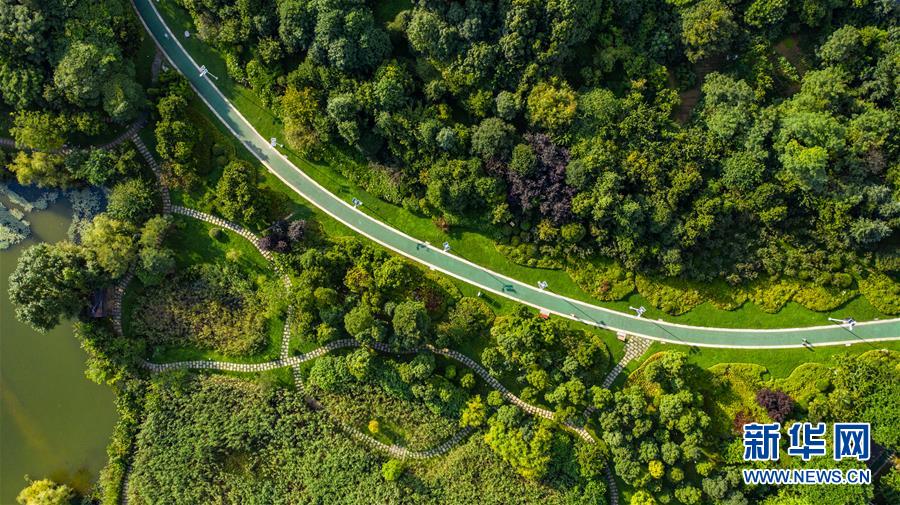 夏日里的观山湖公园风光(7月29日摄,无人机照片)。 观山湖公园位于贵阳市观山湖区中心区域,公园占地5500余亩,林木茂盛,鲜花繁多。园内由观山湖和金华湖组成的生态湿地水体,常年保持均衡水位,一年四季碧水涟漪,是贵阳市的城市“绿肺”。 新华社记者 陶亮 摄