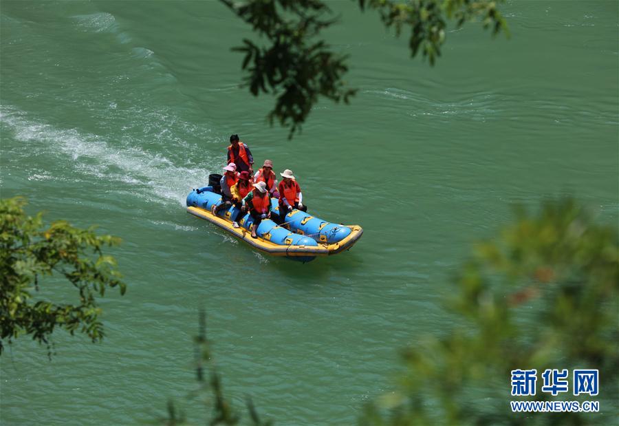 8月4日,游客在湖南省张家界市“百里画廊”茅岩河景区体验水上漂流项目。 连日来,湖南省张家界市出现持续高温晴热天气。张家界“百里画廊”茅岩河景区水上漂流避暑休闲项目受到游客青睐,人们在高山峡谷间的茅岩河上漂流冲浪,乐享夏日清凉。 新华社发(吴勇兵 摄)