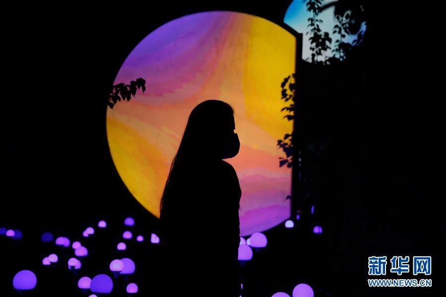 8月20日,在北京玉渊潭公园,一名女子参观光影艺术作品。 当日,北京国际光影艺术季(玉渊潭站)“万物共生”户外光影艺术沉浸式体验展在玉渊潭公园拉开帷幕。体验展结合灯光、激光、影像、音乐、表演等手段和特效装置,将光影艺术与公园自然景观相融合,让参观者领略灯光艺术之美。 新华社记者 张晨 摄