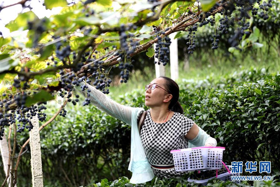 8月23日,在广西三江侗族自治县同乐苗族乡归东村,游客在摘葡萄。 近日,三江县同乐苗族乡归东村的茶叶和葡萄立体种植基地迎来不少游客体验采摘。据介绍,归东村以“村民合作社+专业合作社+农户+电商”的模式发展立体种植,全村种植葡萄1330亩,其中葡萄和茶叶立体种植200亩,已成为当地村民增收致富的重要产业。 新华社发(梁克川 摄)