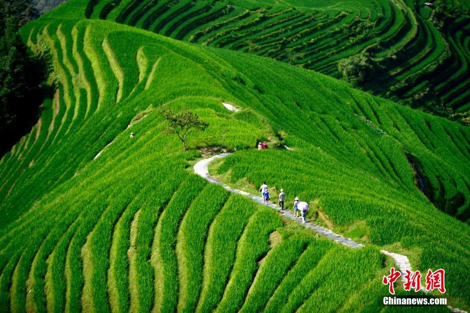 图为游客在龙脊梯田观光游览。 潘志祥 摄