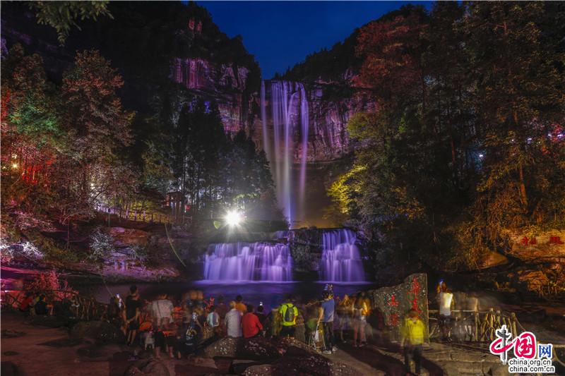 原来,为了拉长人们悠游四面山景区的旅游链条,四面山景区管委会精心策划并推出了四面山奇缘光影乐园观赏活动。每天晚上,采用最新的声光技术打造的七彩瀑布(主题夜游),如梦似幻,更有精彩绝伦的天眼沉浸式光影剧场,让游人迷醉于光影的奇幻之中。