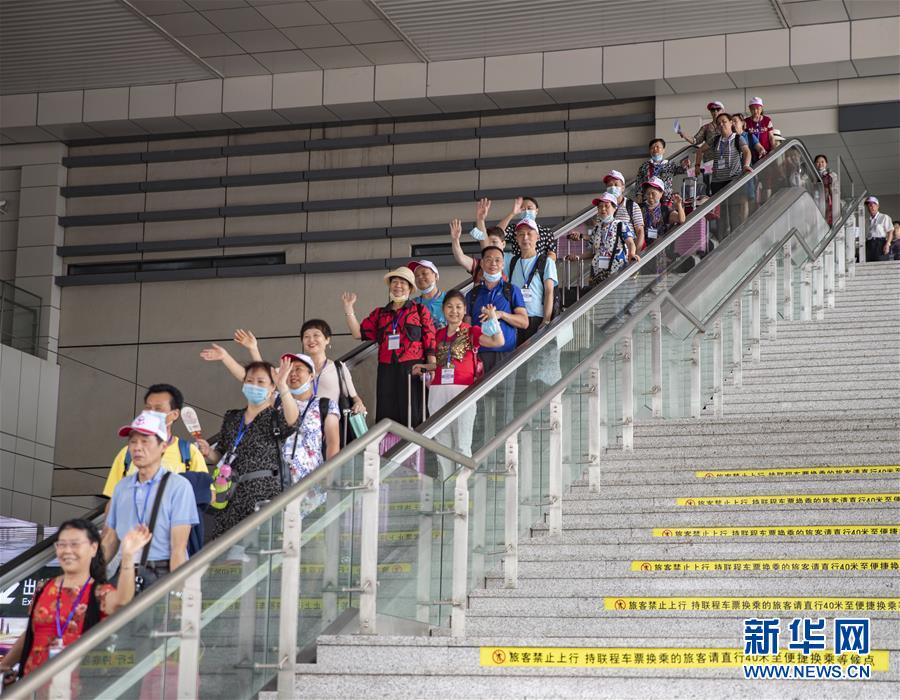 9月8日,在重庆北站,搭乘旅游专列的旅客进站乘车。 当日,一列搭乘270名游客的列车从重庆北站驶出,沿途将停靠西宁、敦煌、张掖、中卫、银川,并于9月17日返回重庆北站。这是重庆客运段在做好常态化疫情防控的前提下,为满足旅客需要开行的今年首趟跨省旅游专列。 新华社记者 黄伟 摄