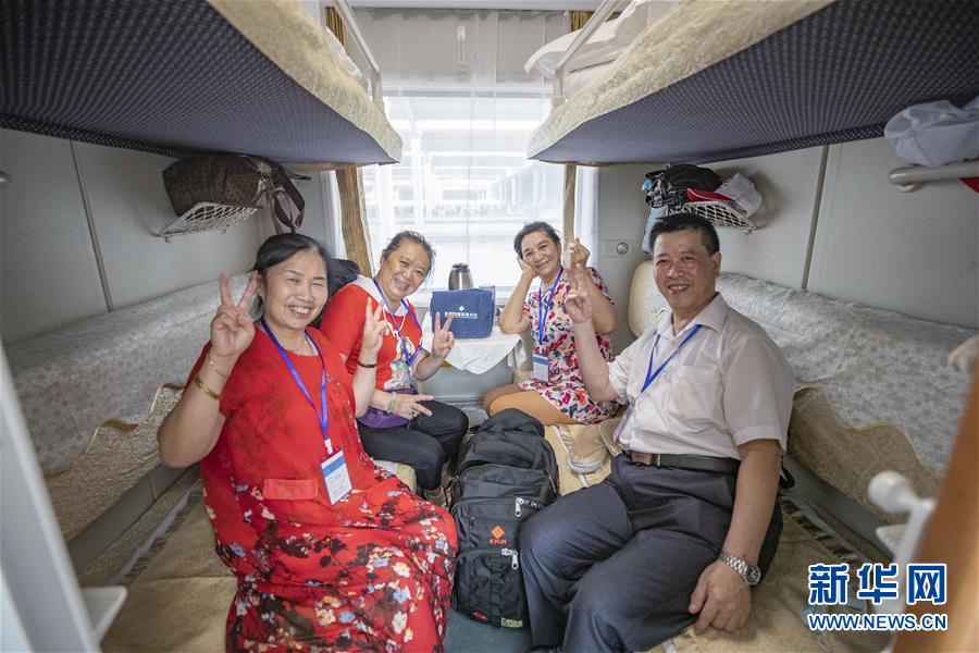 9月8日,旅客在跨省旅游专列的车厢里拍照留念。 当日,一列搭乘270名游客的列车从重庆北站驶出,沿途将停靠西宁、敦煌、张掖、中卫、银川,并于9月17日返回重庆北站。这是重庆客运段在做好常态化疫情防控的前提下,为满足旅客需要开行的今年首趟跨省旅游专列。 新华社记者 黄伟 摄