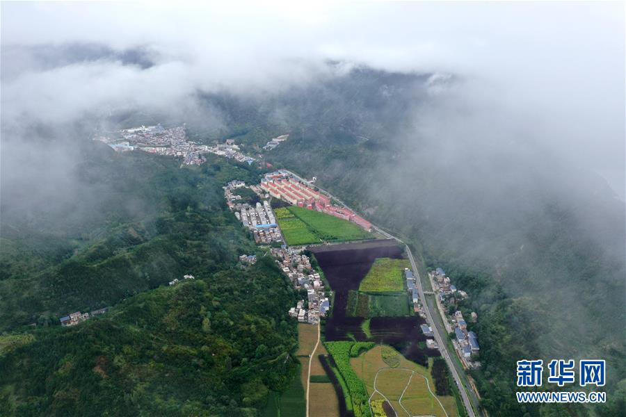 这是8月22日拍摄的河南省洛阳市栾川县叫河镇风光(无人机照片)。新华社记者 冯大鹏 摄