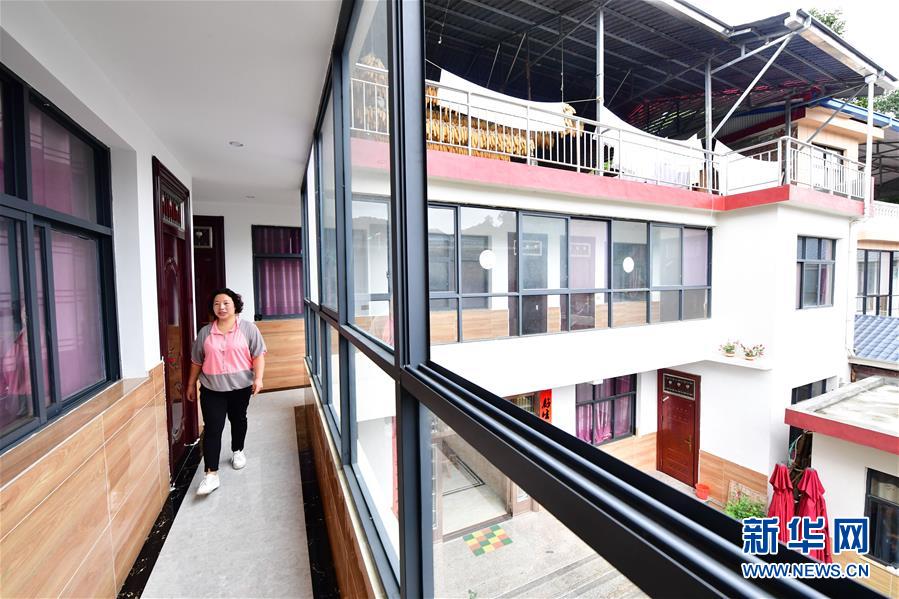 在河南省洛阳市栾川县叫河镇,村民在民宿内工作(8月22日摄)。新华社记者 冯大鹏 摄