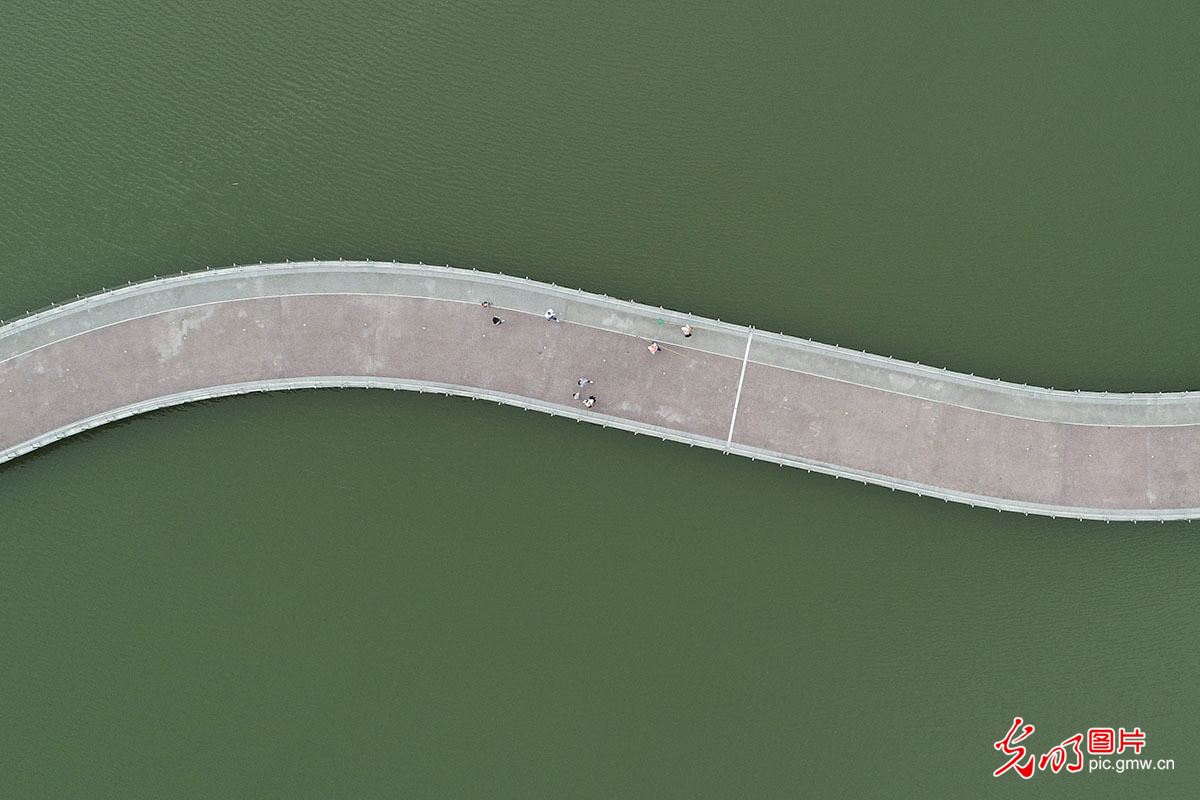 8月28日,市民在位于西城区的西海湿地公园休闲。 近年来,北京因地制宜地开展公园绿地建设,扩大城市的绿色空间,在北京城市核心区和中心城区,通过留白增绿、见缝插绿,改善了百姓身边的生态环境。