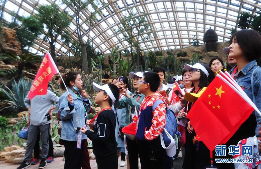 10月1日,游客在太原植物园内游览。 当日,太原植物园投入试运营,试运营期暂定3个月,在此期间门票免费。太原植物园位于晋源区太山脚下,全园占地面积182万平方米,由展览温室、盆景馆、科研中心等建筑及药茶园、月季园等25个专类园构成。 新华社记者 马毅敏 摄