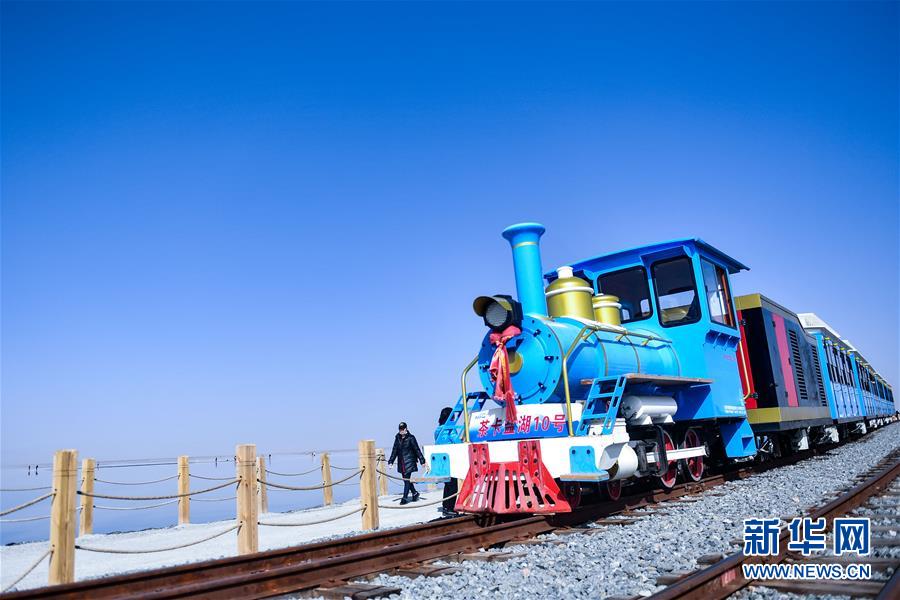 9月23日,一列观光小火车行驶在茶卡盐湖“天空之镜”景区。 新华社记者 张龙 摄