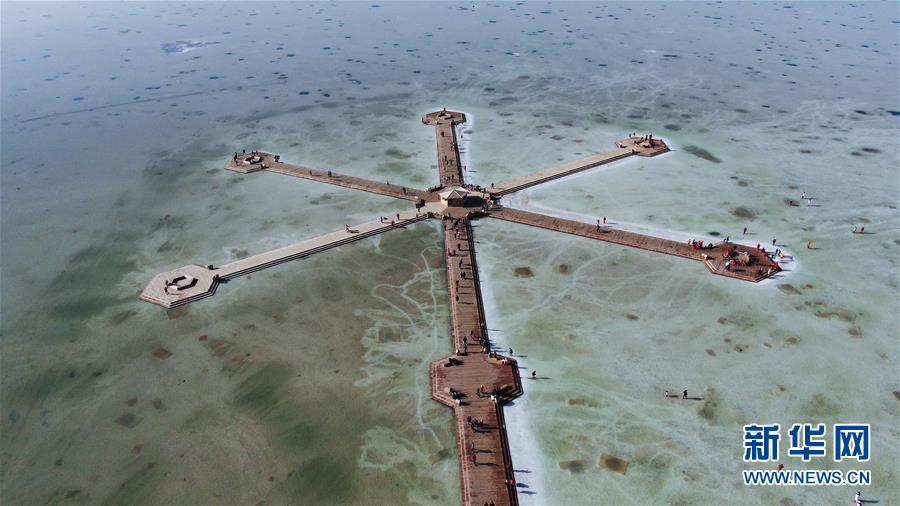 这是9月23日拍摄的茶卡盐湖“天空之镜”景区一角(无人机照片)。 新华社记者 张龙 摄