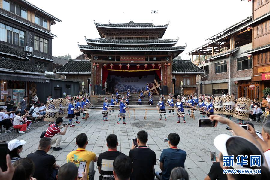 10月2日,游客在三江侗族自治县林溪镇程阳八寨景区观看侗族纺纱表演。 2014年贵广高铁开通运营以来,广西柳州市三江侗族自治县依托少数民族风情资源优势,全力做好旅游扶贫,使三江快速融入“大桂林”旅游经济圈。 新华社发(龚普康 摄)