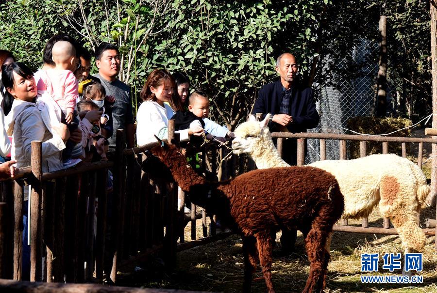 10月7日,游客在森林动物乐园里游玩。 国庆长假期间,众多游客来到河南省郑州市一家森林动物乐园观赏游玩,亲近动物,乐享假期。 新华社记者朱祥摄