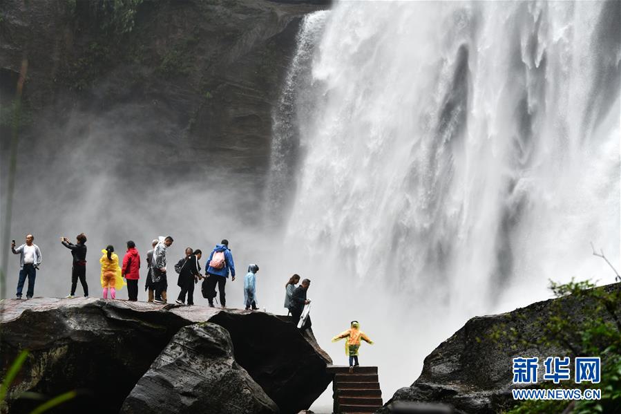 10月7日,游客在贵州省赤水大瀑布景区观光。新华社记者 杨文斌 摄