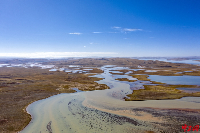 2020年10月10日,航拍青海果洛玛多县黄河源头,延绵100多公里,一山一景,一沟一色,千湖融会贯通,最后汇聚在玛多县,成为涛涛黄河之水。黄文鹏/视觉中国