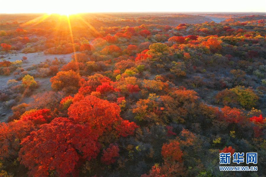 这是10月12日拍摄的大青沟国家级自然保护区内成片的五角枫(无人机照片)。 眼下,位于内蒙古自治区通辽市科尔沁左翼后旗的大青沟国家级自然保护区秋意正浓,斑斓多彩的秋景令人陶醉。 新华社记者 刘懿德 摄