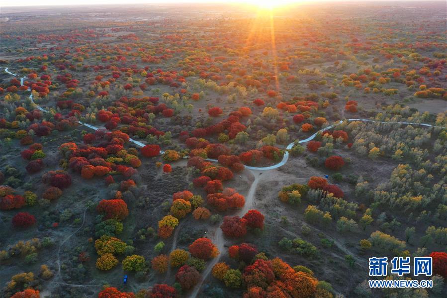 这是10月12日拍摄的大青沟国家级自然保护区秋景(无人机照片)。 眼下,位于内蒙古自治区通辽市科尔沁左翼后旗的大青沟国家级自然保护区秋意正浓,斑斓多彩的秋景令人陶醉。 新华社记者 刘懿德 摄