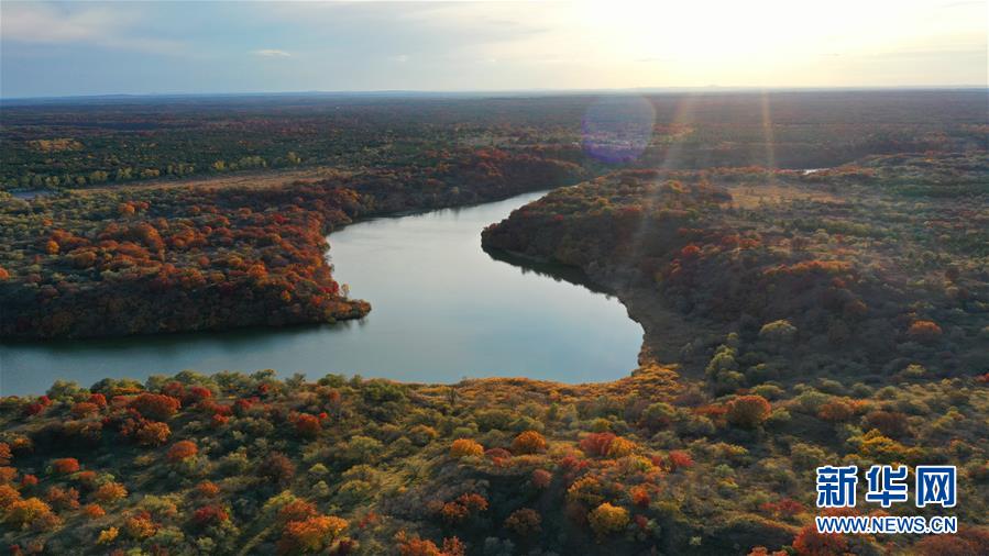 这是10月12日拍摄的大青沟国家级自然保护区秋景(无人机照片)。 眼下,位于内蒙古自治区通辽市科尔沁左翼后旗的大青沟国家级自然保护区秋意正浓,斑斓多彩的秋景令人陶醉。 新华社记者 刘懿德 摄