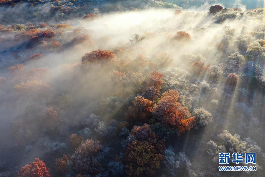 这是10月12日拍摄的大青沟国家级自然保护区秋景(无人机照片)。 眼下,位于内蒙古自治区通辽市科尔沁左翼后旗的大青沟国家级自然保护区秋意正浓,斑斓多彩的秋景令人陶醉。 新华社记者 刘懿德 摄