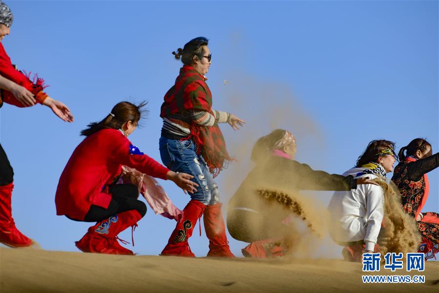 10月21日,游客在阿拉善通湖草原旅游区沙漠观光旅游项目中游玩。 金秋时节,内蒙古阿拉善盟依托当地独特的自然风光和旅游资源,持续推出减免景区门票、发放旅游优惠券、开行旅游包机专列、构建毗邻区域环线游等措施,提升旅游供给能力和服务质量,吸引大量游客前来观光游览。 新华社发(王正 摄)