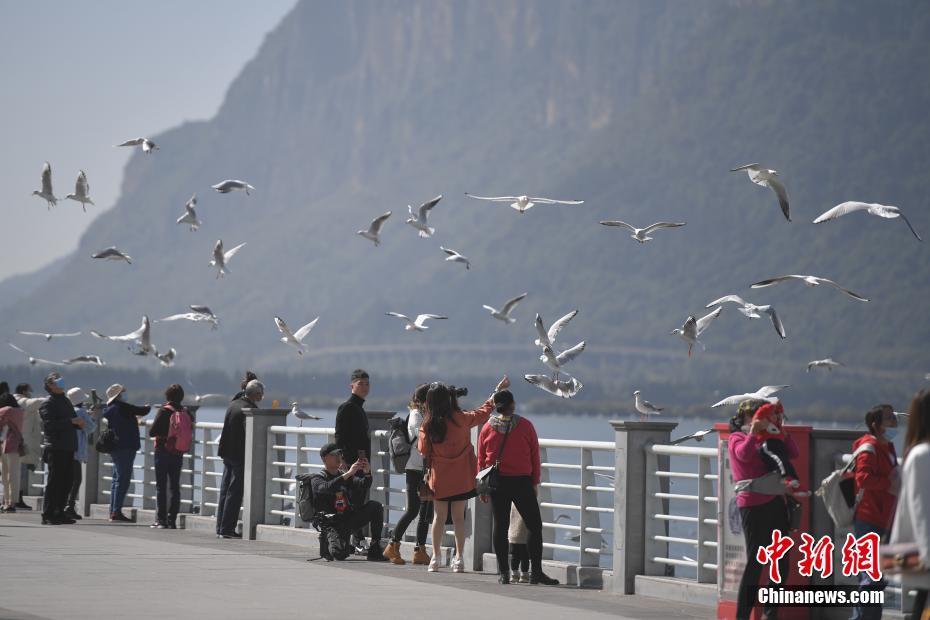 10月23日,云南昆明,市民及游客在滇池边观鸥。 中新社记者 刘冉阳 摄
