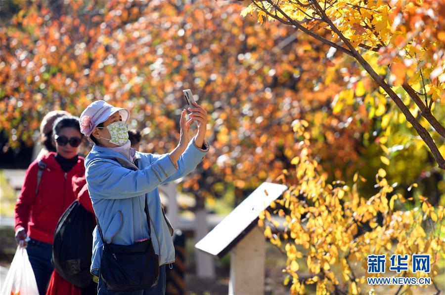 11月1日,游人在北宫国家森林公园拍照。 深秋时节,市民及游客来到位于北京市丰台区的北宫国家森林公园秋游赏叶,欢度周末。 新华社记者 任超 摄