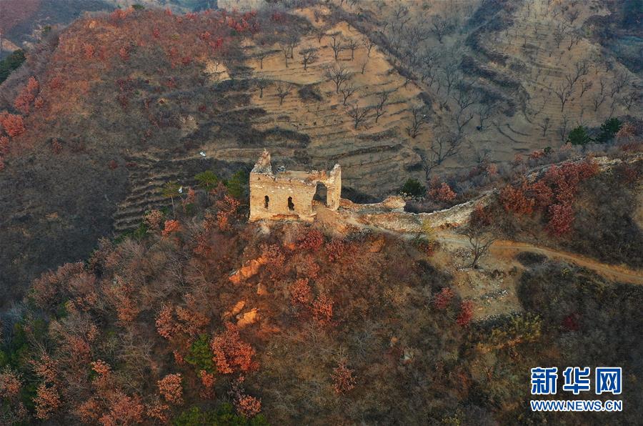 这是11月4日在迁西县金厂峪镇境内拍摄的榆木岭长城景色(无人机照片)。 深秋时节,位于河北省迁西县金厂峪镇境内的榆木岭长城风景如画。 新华社记者杨世尧摄