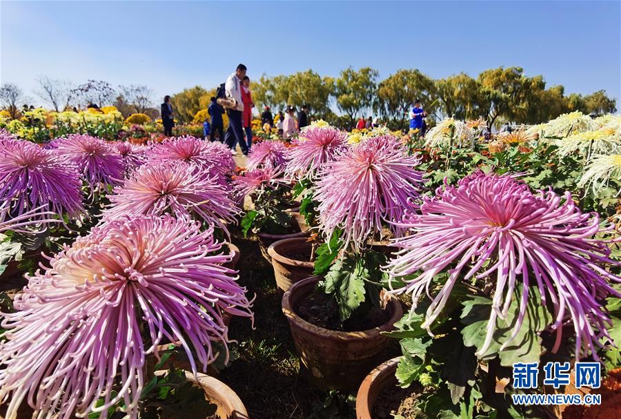11月8日,游客在沙河市白塔镇栾卸村菊花园游览。 近日,河北省沙河市白塔镇栾卸村菊花园开门迎客,吸引众多游客前来观赏。近年来,栾卸村引进优质菊花品种开展培育种植,打造拥有30000多盆、500多个品种的菊花园,助力美丽乡村建设和乡村旅游发展。 新华社记者 牟宇 摄