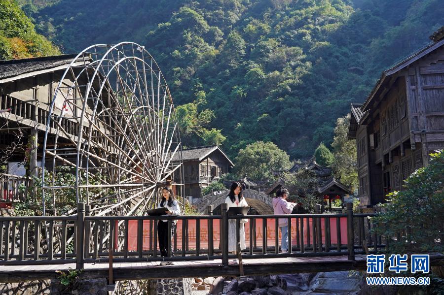 11月11日,来自景德镇的大学生在大觉山风景区大觉古镇采风写生。