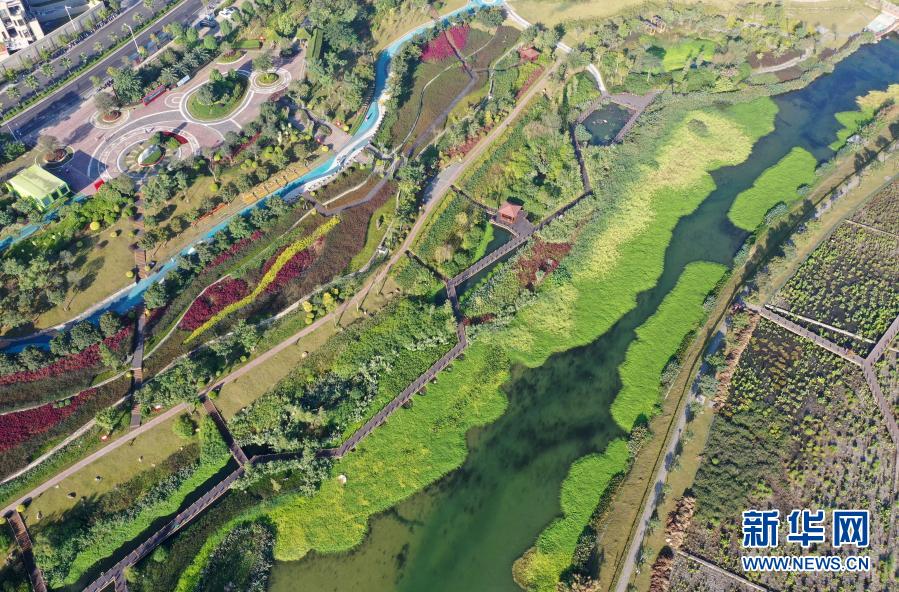 这是南宁市那考河湿地公园景观(11月13日摄,无人机照片)。