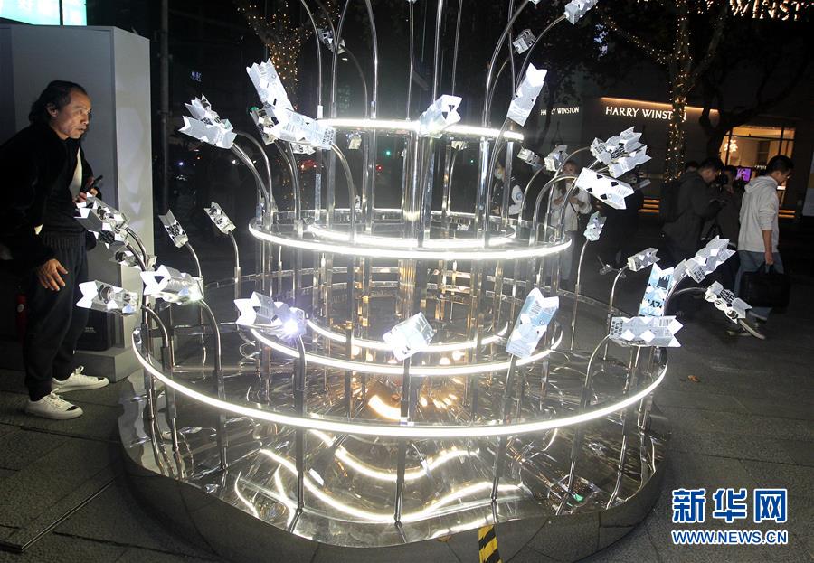 11月16日在上海新天地拍摄的主题为“风吹麦浪”的彩灯。 当日,“2020光影上海”灯光艺术节在上海新天地揭幕,由国内外艺术机构设计制作的一批光影艺术装置亮相,助力申城夜间经济。 新华社记者 陈飞 摄