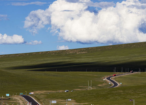 夏季的317国道,藏区草原湛蓝的天空白云朵朵,如雪莲簇拥,似哈达飘飞,犹如莲花幻境。