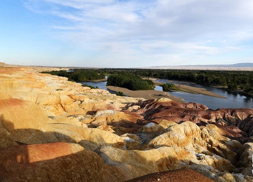 五彩滩景区位于新疆阿勒泰地区布尔津县城以北20多公里的额尔齐斯河北岸,属于典型的雅丹地貌,吸引国内外游客和摄影爱好者前来游览、拍摄。