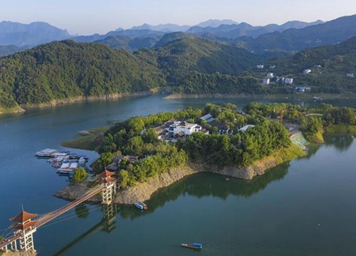 长江最大支流汉江流经陕西省安康市瀛湖镇时,由于安康水电站大坝的拦截而形成水域面积77平方公里的瀛湖,湖中有岛屿近百座。