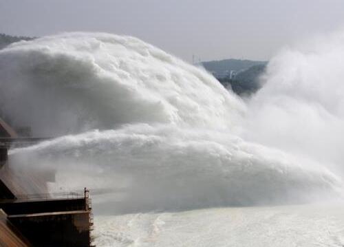位于河南济源的黄河小浪底水库按4200立方米每秒流量泄洪,巨大的水流喷涌而出,再现“黄河之水天上来”的壮观景象。