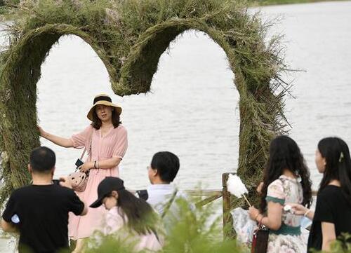 6月25日,游人在河北省石家庄植物园游玩赏景。 当日是端午节,人们用各种方式庆祝佳节,尽享假日时光。