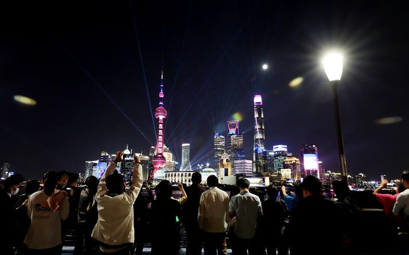 9月30日,游客在上海外滩欣赏灯光秀。 近日,上海天气凉爽宜人,不少市民和游客在夜间出游,领略城市美丽的夜色。 新华社记者 方喆 摄9月29日,游客在上海迪士尼乐园游玩。 近日,上海天气凉爽宜人,不少市民和游客在夜间出游,领略城市美丽的夜色。 新华社记者 方喆 摄